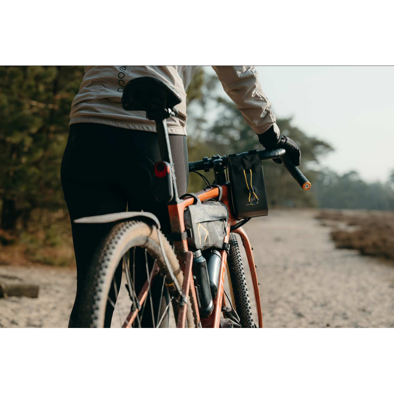 This 1.3L pack is made with waterproof materials and welded construction, to protect your gear from the weather. A three-point system securely attaches to either side of your bike’s cockpit, with additional mounting options allowing attachment to hardware such as racks or baskets.