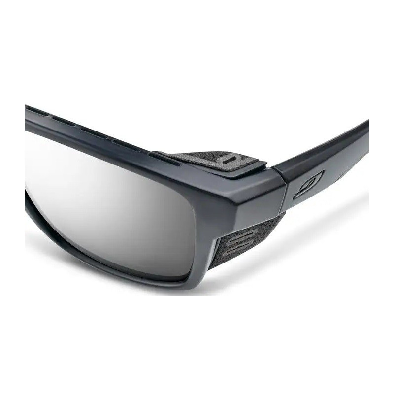 Julbo has combined its high-altitude technical expertise with a modern look to create high-protection, high-performance sunglasses. Removable fabric side shields provide flawless protection and comfort. Fitted with the Air Flow venting system, SHIELD M will be your ally of choice when you start to work harder on the ascent. They'll stay firmly in place thanks to curved Grip Tech temples and a non-slip bridge. And the sophisticated design will add an extra note of boldness to your next high-altitude challenge.