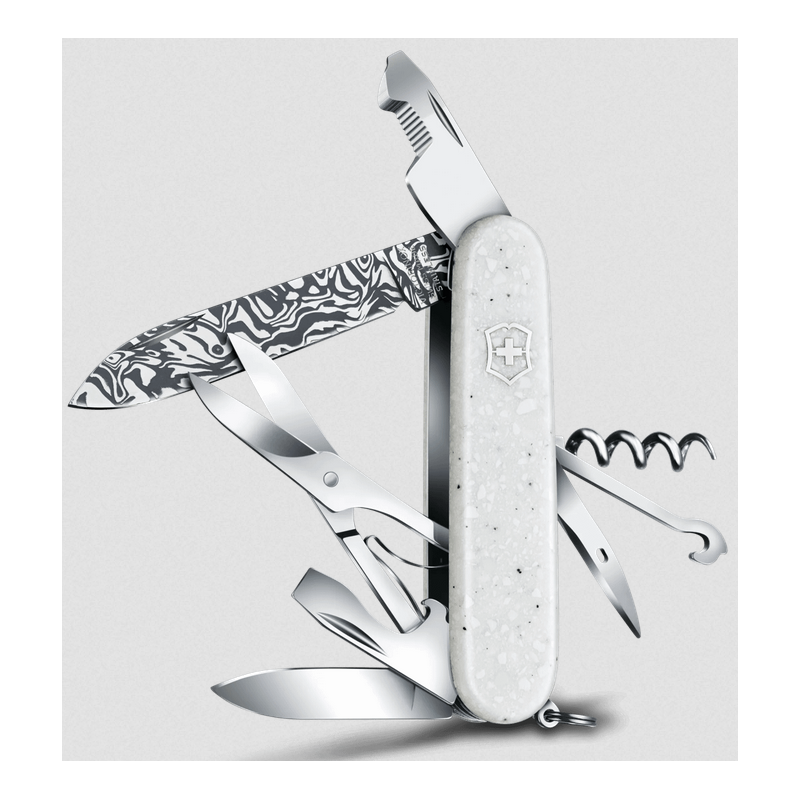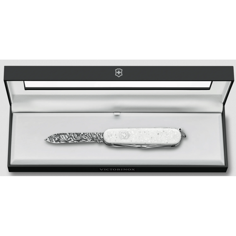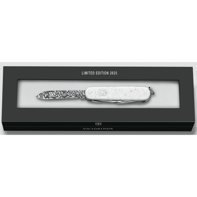 Unveil the exclusivity of the Special Companion Damast Limited Edition 2025 pocket knife. Showcasing the elegance of Corian®, with its cool, matte white, scratch-resistant surface. Only 7,000 uniquely numbered pieces worldwide, each with the beautiful appearance of natural stone and the excellence and ingenuity of the knife's design.