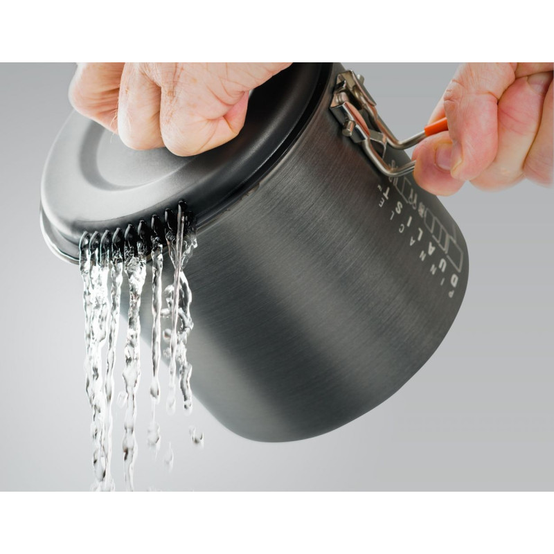 Šis izturīgais un līdz sīkumiem pārdomātais divu personu alumīnija katliņš būs lielisks ceļabiedrs.