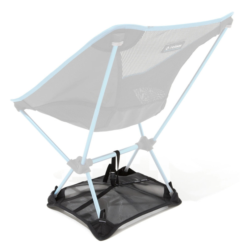 Ground sheet paliktnis Helinox Chair NE krēsliņam. Plaiktnis stiprinās pie krēsla kājām, izlīdzinot slodzi un novērš grimšanu vai apgāšanos uz mīksta seguma.