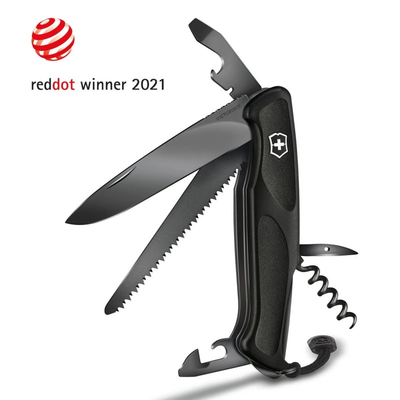 Onyx Black Edition sērijas ikoniskais Ranger Grip nazis ar 12 funkcijām un elegantu melnu dizainu.