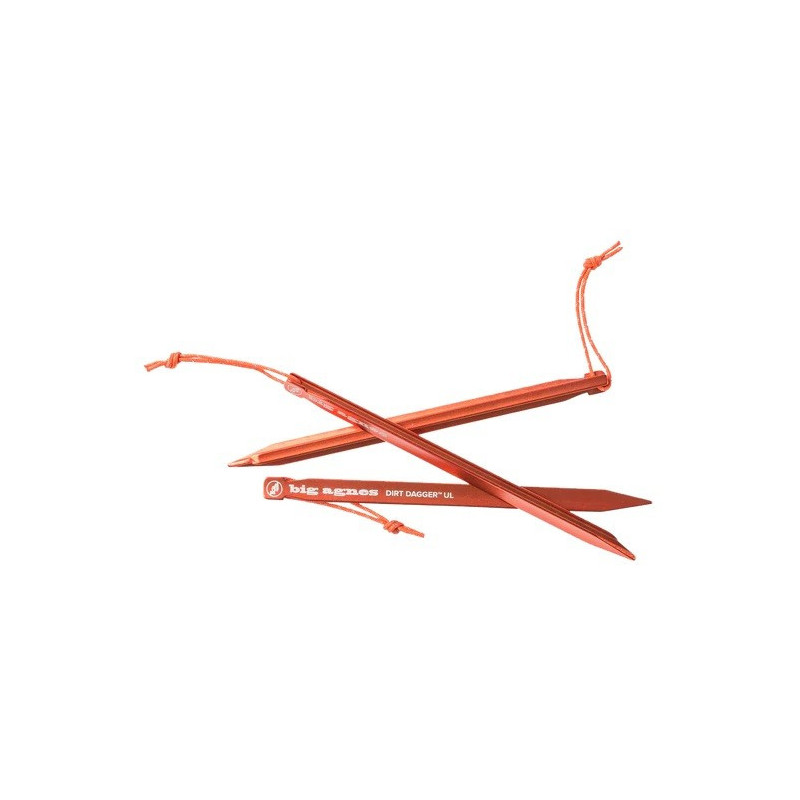 Dirt Dagger™ UL telts mietiņi ar patentētu I-Beam alumīnija konstrukciju, kas ir ne tikai viegla, bet arī izturīga. Galos cilpiņa, ērtākai mietiņu izvilkšanai. Komplektā 6gab.